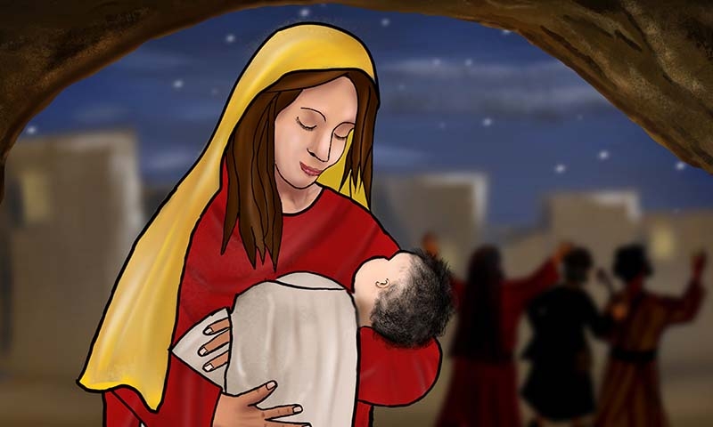 Ξαφνικά, μέσα στην άγρια νύχτα, έλαμψε ένα φως στον ουρανό! Τυφλωμένοι από το φως, κρατούσαν τα χέρια τους μπροστά από τα μάτια. Κατατρόμαξαν! Ένας άγγελος, ένας αγγελιοφόρος του Θεού, ήρθε από τον ουρανό γι’ αυτούς.